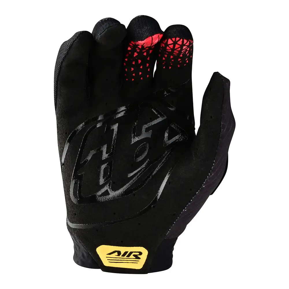 The Air Glove features a compression-molded cuff and a single-layer palm with laser perforated holes for breathability. Micro-mesh is used all over for added ventilation. Silicon print on finger offers a grippy spot for brake lever grip.